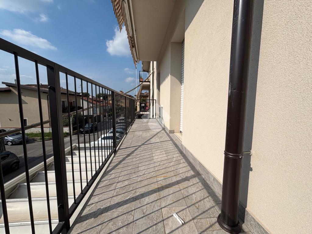 Uno dei punti di forza della soluzione è l’ampio balcone che abbraccia due lati dell’abitazione, accessibile dalla zona giorno e dalla cucina, ideale per godere di momenti all’aperto e garantire grande luminosità agli ambienti.